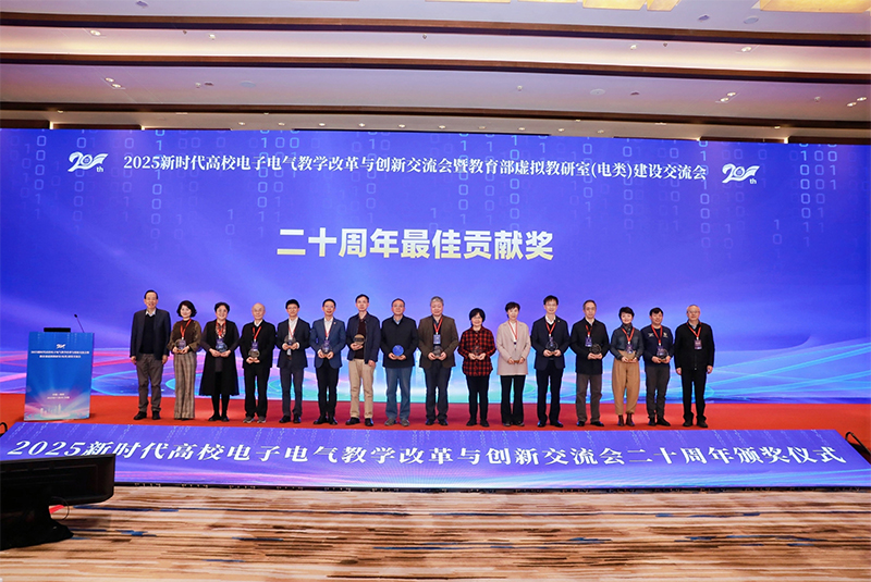 2025.11.29 中心主任王淑娟和中心兼职教授姜三勇在2025新时代高校电子电气教学改革与创新交流会上,获得“二十周年最佳贡献奖”。